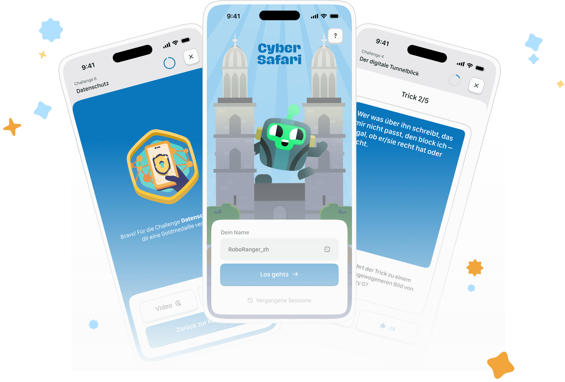 Die Cyber Safari ist eine Entdeckungsreise durch Zürich. Hier warten spannende Challenges auf die Teilnehmenden. Jede Challenge entspricht einem digitalen Risiko, das im Alltag auf euch lauern kann – wie Stress durch Social-Media-Konsum, Cybermobbing oder Verletzungen deiner digitalen Privatsphäre. Ihr lernt dazu, trainiert euer Wissen und löst Rätsel – und könnt so zum Cyberchampion werden.